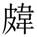 , 拼音为wéi, 笔画为14画, 部首为皮, unicode编码2500A, 汉语字典解释:同【韦】。