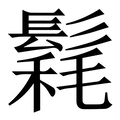 䰍, 拼音为cì,qī,xiū, 笔画为21画, 部首为髟, unicode编码4C0D, 汉语字典解释:1、 同“髤”。《説文•桼部》:“䰍,桼也。”《廣韻•尤韻》:“䰍”,同“髤”。
