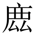 , 拼音为lù, 笔画为11画, 部首为广, unicode编码22256, 汉语字典解释:同【鹿】。