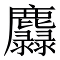 , 拼音为lù, 笔画为14画, 部首为广, unicode编码222A9, 汉语字典解释:,同【鹿】。