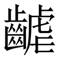 , 拼音为è, 笔画为24画, 部首为齒, unicode编码2A63D, 汉语字典解释:同【腭】。