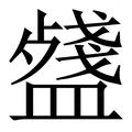 , 拼音为cán, 笔画为17画, 部首为皿, unicode编码250A5, 汉语字典解释:,同【