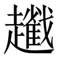 , 拼音为jié,jí, 笔画为22画, 部首为走, unicode编码27FA2, 汉语字典解释:,同【