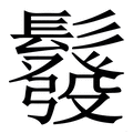 , 拼音为bō, 笔画为22画, 部首为髟, unicode编码29BCC, 汉语字典解释:[