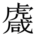 , 拼音为yán, 笔画为17画, 部首为虍, unicode编码271F1, 汉语字典解释:同【䖗】。熊虎极有力