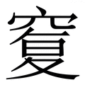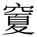 , 拼音为fú, 笔画为15画, 部首为穴, unicode编码259DC, 汉语字典解释:同【伏】。