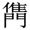 , 拼音为jùn, 笔画为18画, 部首为門, unicode编码28D8A, 汉语字典解释:,同【俊】。