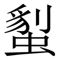 , 拼音为lí, 笔画为15画, 部首为虫, unicode编码273C7, 汉语字典解释:同【劙】。
