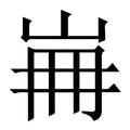 , 拼音为bēng,yòng, 笔画为8画, 部首为山, unicode编码21DA4, 汉语字典解释:,同【崩】。同【用】。