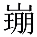 , 拼音为bēng, 笔画为9画, 部首为山, unicode编码21DCC, 汉语字典解释:同【崩】。