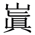 , 拼音为diān, 笔画为13画, 部首为山, unicode编码21ED7, 汉语字典解释:同【巅】。