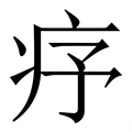 , 拼音为yú, 笔画为9画, 部首为疒, 五笔为UCBK, unicode编码24D48