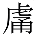 , 拼音为yōng, 笔画为13画, 部首为虍, unicode编码271BF, 汉语字典解释:同【庸】。