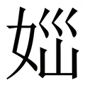 , 拼音为nǎo, 笔画为9画, 部首为女, unicode编码2172A, 汉语字典解释:1、 同“㛴”。 ,同【恼】。