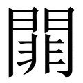 , 拼音为fēi, 笔画为16画, 部首为門, unicode编码28D48, 汉语字典解释:①门火气。②同【扉】。