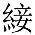 , 拼音为jiē, 笔画为14画, 部首为糹, unicode编码26049, 汉语字典解释:,同【接】。连接