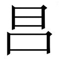, 拼音为chāng, 笔画为7画, 部首为日, unicode编码2314A, 汉语字典解释:同【昌】。