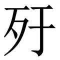 , 拼音为xiǔ, 笔画为7画, 部首为歹, unicode编码239BF, 汉语字典解释:同【朽】。