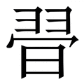 , 拼音为mò, 笔画为12画, 部首为日, unicode编码231F6, 汉语字典解释:1、 同“沒”。