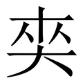 , 拼音为jiá, 笔画为9画, 部首为大, unicode编码21616, 汉语字典解释:同【爽】。疑同【夾】见于台湾人名。