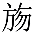 , 拼音为wù, 笔画为10画, 部首为方, unicode编码230E6, 汉语字典解释:同【物】。古代的一种杂色旗子