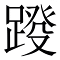 蹳, 拼音为bō, 笔画为19画, 部首为足, unicode编码8E73, 汉语字典解释:1、 用脚拨开:“汉王急,马罢,虏在后,常~两儿弃之。”