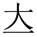 , 拼音为lì, 笔画为4画, 部首为大, unicode编码215D3, 汉语字典解释:同【立】。同【土】。