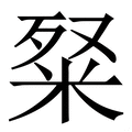 , 拼音为càn, 笔画为14画, 部首为米, unicode编码25EA4, 汉语字典解释:同【粲】。