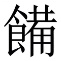 , 拼音为bèi, 笔画为18画, 部首为飠, unicode编码29773, 汉语字典解释:同【糒】。