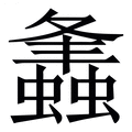, 拼音为páng, 笔画为21画, 部首为虫, unicode编码27527, 汉语字典解释:,同【蠭】。