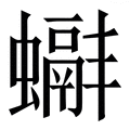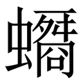 , 拼音为guǒ, 笔画为19画, 部首为虫, unicode编码27498, 汉语字典解释:1、 同“蜾”。《説文•虫部》:“