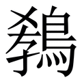 , 拼音为yàn, 笔画为19画, 部首为鳥, unicode编码2A0A2, 汉语字典解释:同【雁】。