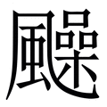 , 拼音为sāo, 笔画为22画, 部首为風, unicode编码29648, 汉语字典解释:,同【颾】。