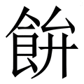 , 笔画为13画, 部首为飠, unicode编码296B3, 汉语字典解释:1、 同“飯”。