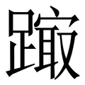 , 笔画为18画, 部首为足, unicode编码28112, 汉语字典解释:同【】。