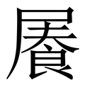 , 笔画为14画, 部首为尸, unicode编码21CCB, 汉语字典解释:疑同【】。