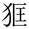 , 拼音为kuāng, 笔画为9画, 部首为犭, unicode编码2477F, 汉语字典解释:,同【劻】。
