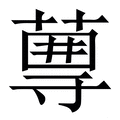 , 拼音为zūn, 笔画为12画, 部首为廾, unicode编码2235C, 汉语字典解释:1、 同“尊”。《説文•酉部》:“