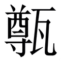 , 拼音为zūn, 笔画为16画, 部首为瓦, unicode编码24B90, 汉语字典解释:1、 同“