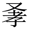 , 拼音为jiào, 笔画为7画, 部首为子, unicode编码21948, 汉语字典解释:1、 仿效。《説文•子部》:“