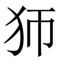 , 拼音为shī, 笔画为7画, 部首为犭, unicode编码24733, 汉语字典解释:同【狮】。
