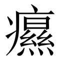 , 拼音为luǒ, 笔画为20画, 部首为疒, unicode编码24EF3, 汉语字典解释:同【瘰】。,越南汉字同【】。