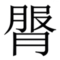 , 拼音为tún, 笔画为14画, 部首为月, unicode编码267A0, 汉语字典解释:同【臀】。