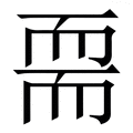 , 拼音为ér,xū, 笔画为12画, 部首为而, unicode编码264D4, 汉语字典解释:连系。,同【需】。