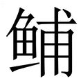 , 笔画为15画, 部首为鱼, unicode编码2B699, 汉语字典解释:【鯆】的类推简化字。